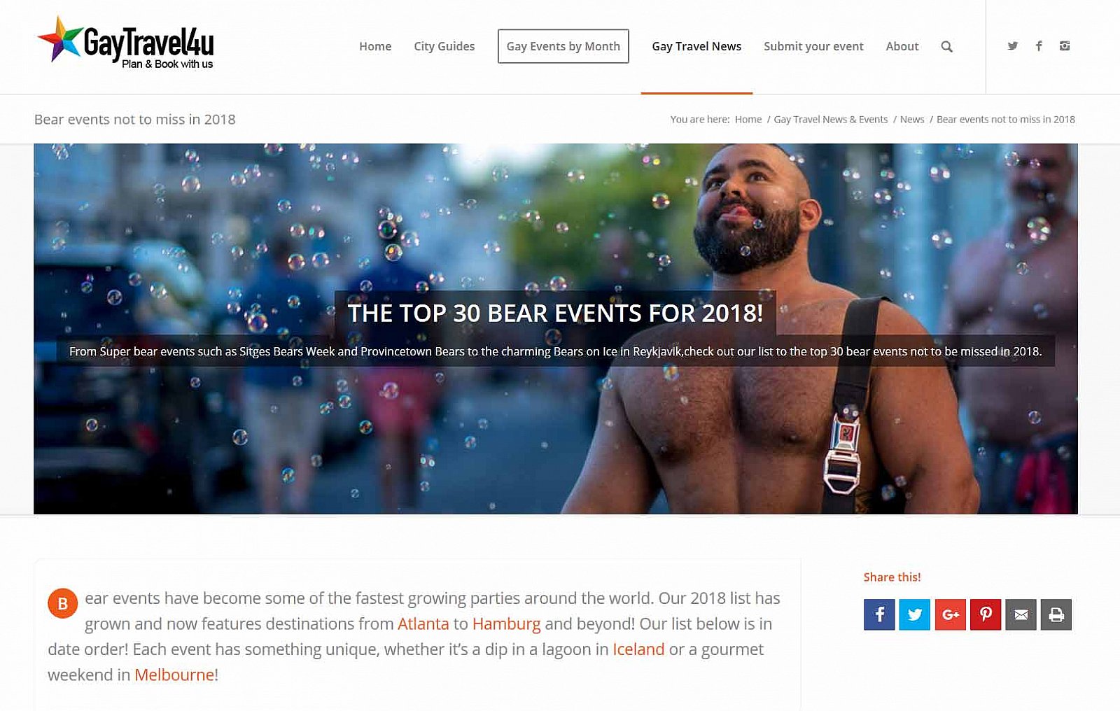 Bear World Magazine tilnefndi BEARS ON ICE sem einn af 15 bestu viðburðunum í heiminum og er á topp 30 listanum yfir bestu BEAR viðburðina í heiminum að mati GayTravel4u. Þetta er í fjórtánda sinn sem viðburðurinn er haldin en hann var fyrst haldinn árið 2005. Síðan þá hefur viðburðurinn stækkað jafn og þétt og er nú einn af stærstu hinsegin viðburðum ársins á Íslandi.