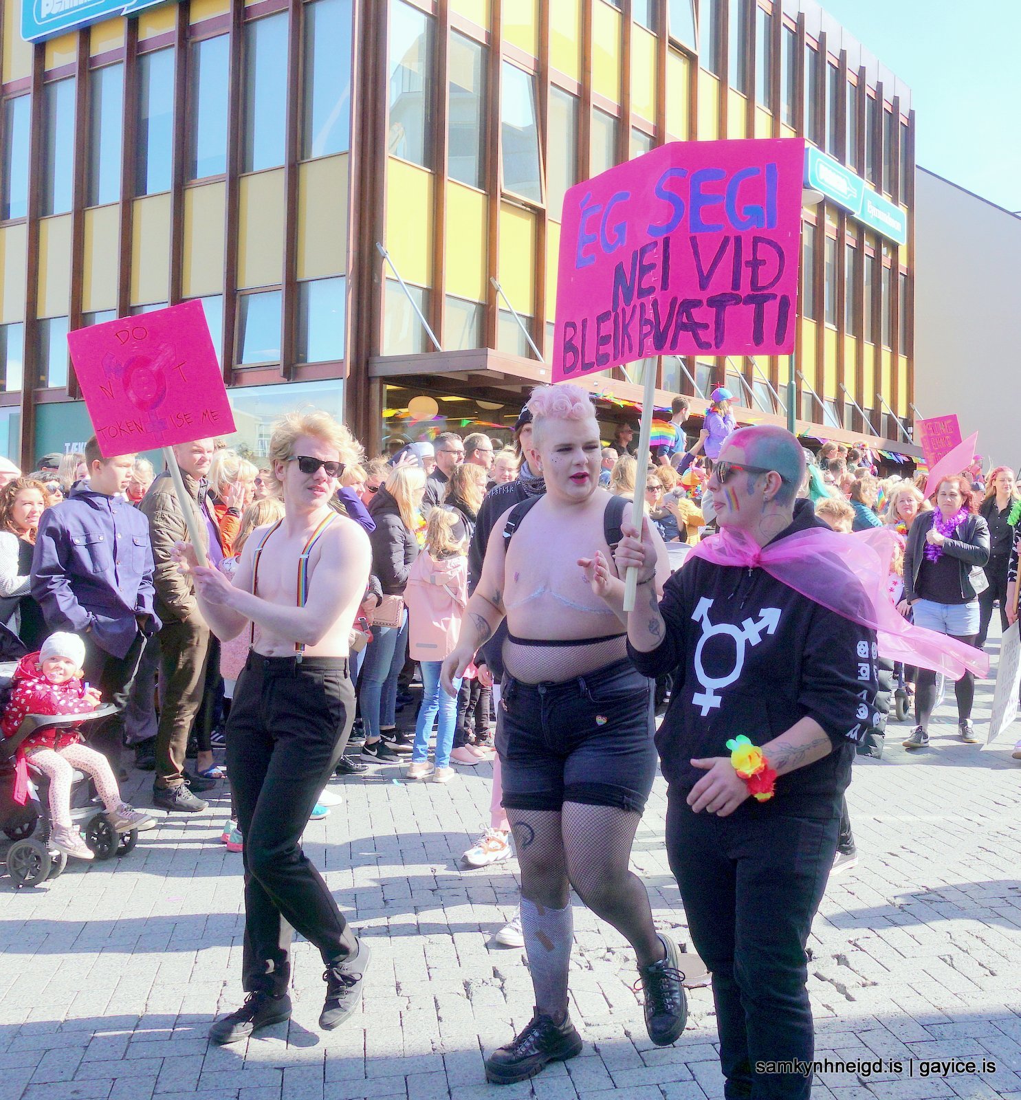 Hér eru svipmyndir frá Gleðigöngunni 17. ágúst 2019. Gleðin skein úr andlitum þáttakenda og gesta þó undirtónninn væri alvarlegur í sumum atriðunum.